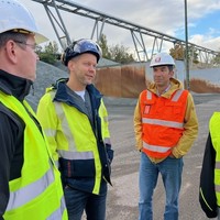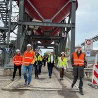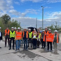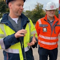 Es folgten dann eine Orientierung des Geländes, bevor wir dann geschützt und bestens ausgestattet über das große Terrain, das auch direkt an den breiten Bahngleisen im Bereich Altona liegt, gemeinsam gehen konnten. Betriebsleiter Karsten Schmidtke stellte uns die Rohstoffanlieferung, -aufbewahrung und Aufbereitung zur Produktion im Asphaltmischwerk vor. Begleitet wurden wir dabei auch von Hartwig Voß, Leiter der Maschinentechnik der Vereinigten Asphalt Mischwerke GmbH und CO KG