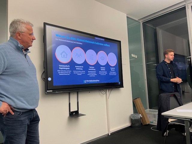 Wir bekamen einen informativen Rückblick in die Entstehung und Grundidee des Vereins und die Anfangsphase von Finnex , Zusammenarbeit mit dem Dachverband BVH sowie die spannende und erfolgreiche Weiterentwicklung bis heute. Toll, was Finnex alles weiter auch im Rahmen der Alumni Arbeit weiter vorhat. Gerne kooperieren wir weiter miteinander und informieren uns gegenseitig über die Aktivitäten innerhalb der Vereine.