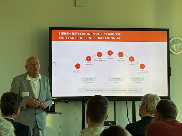 Mit dem Thema und der Ausführung zu seinem neuen Buch „Symbiotic Minds“- Superior Leadership with AI hat Roland Gieske uns mit in seine Welt genommen und referierte über die Entscheidungsqualität von Führungskräften im KI Zeitalter.