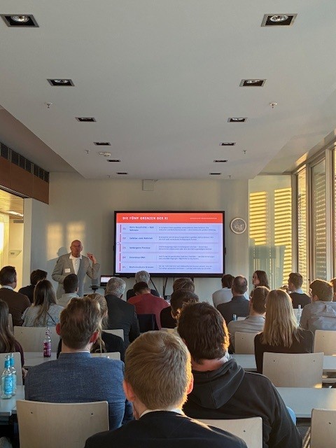 Roland Gieske hat uns sein Vier Spähern Modell vorgestellt sowie die 5 Grenzen der KI und auch sieben starke Thesen besprochen, die wir sehr intensiv diskutiert haben.