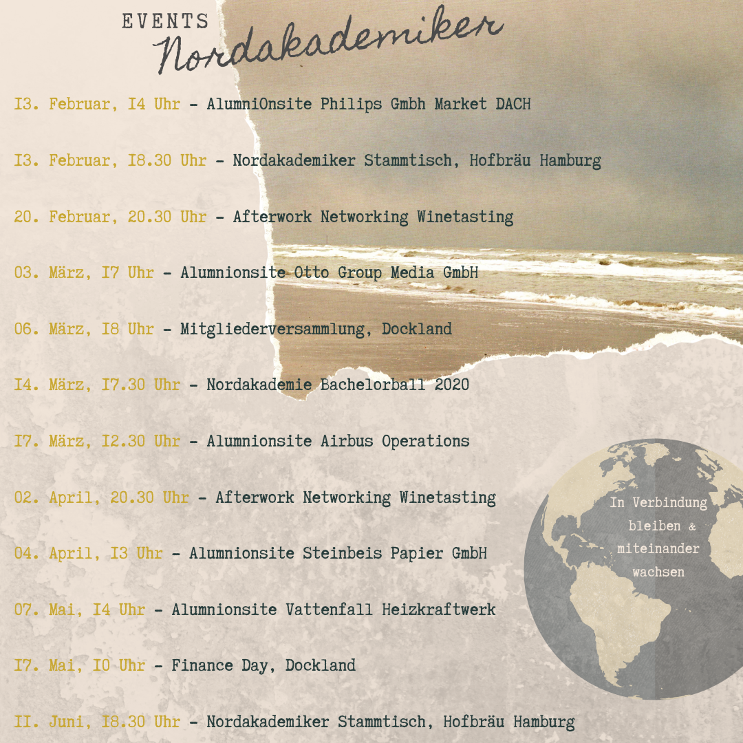 Happy New Year 2020 - Hier die exklusiven Nordakademiker Events für das kommende halbe Jahr auf einen Blick !